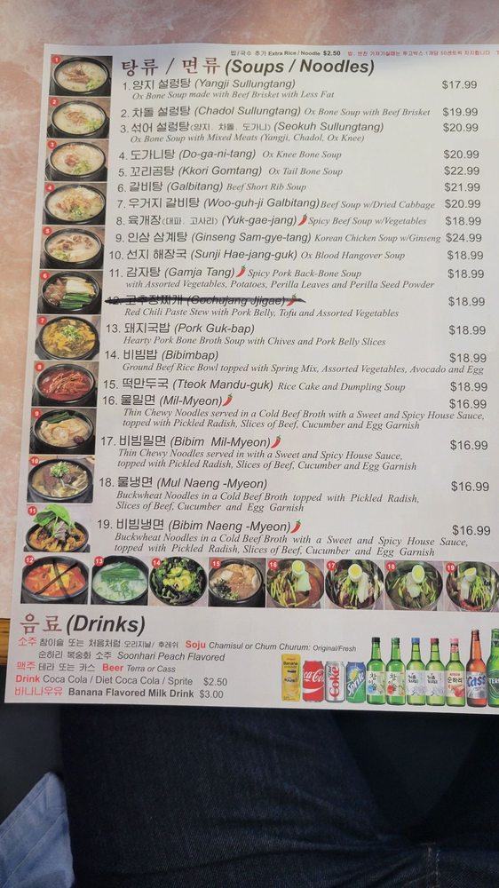 “ Had a nice bowl of sullungtang for breakfast...like a real Korean . The broth was rich and flavourful with good portion of meat and noodles. The side dishes were simple but very tasty. Finished the bowl clean! Their menu had lots of other items which I would like to try next time. ... ”
