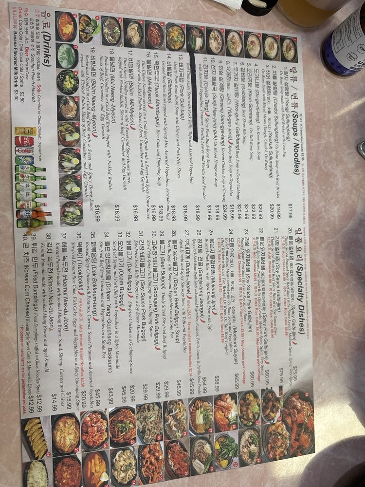 “ I dont really like soup but I love the beef soup here so much. Its become a comfort food. The party platters are also good if you want something a bit heavier and more flavorful. You get banchan with free refills and a choice of purple or white rice. Like to sit with a view of the KPop videos. ”